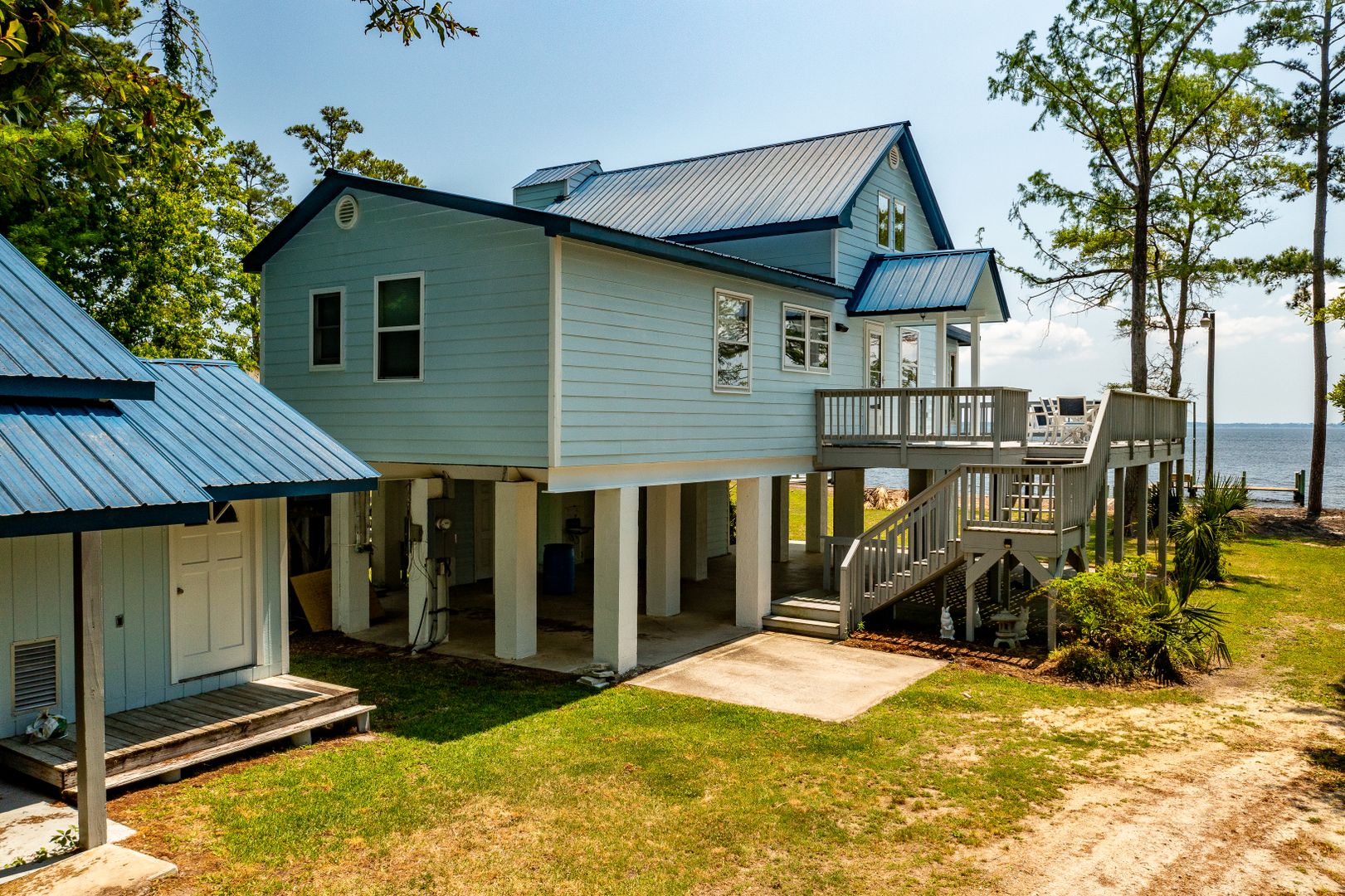 **Vacation Rental**Vacation Rental**Nightly rates **Gorgeous, completely remodeled, three bedroom, three bath furnished home on the Neuse River. Elevated home with open space/patio under house. Primary and guest bedrooms on the first floor. King bed in primary bedroom suite with tiled shower in bath. Open living area with expansive river views. Fireplace to enjoy on cooler nights. Lovely kitchen with stainless steel appliances. Dining area and sitting room with desk, in case you have to work on your vacation. Large room upstairs with great river view. There is a queen bed and a full bed so bring the whole family. Bathroom upstairs with a shower. Home has elevator from ground floor to the top floor for your convenience. Nice pier/boat dock. Bring your rod n reel and crab lines and catch your dinner. Completely furnished with linens and dishes. $250 per night plus tax and cleaning fee.